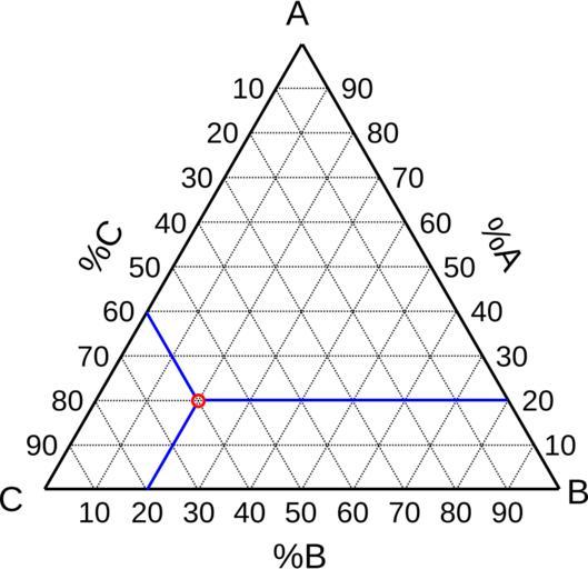 Keywords: Lecture diagramme ternaire.svg en How to read a ternary diagram fr Comment lire un diagramme ternaire own Cdang 2009-06-09 Created with Inkscape Ternary phase diagrams
