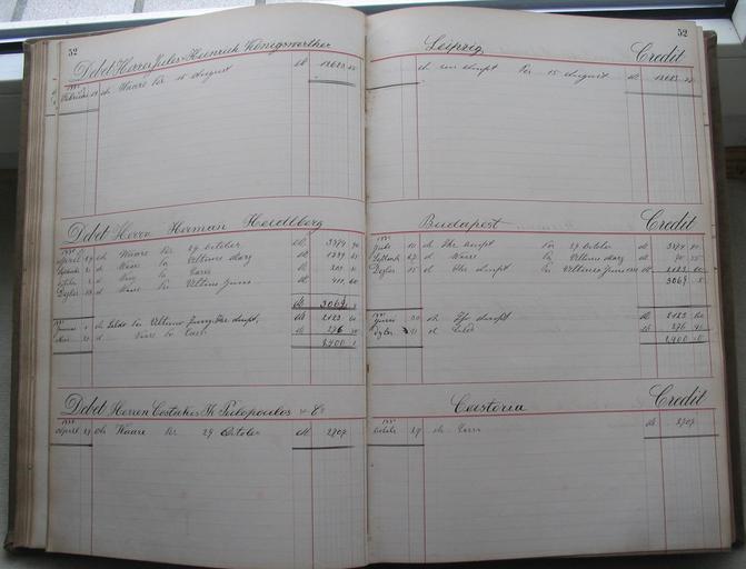 | Keywords: Ledger of the fur trader Dedo from Leipzig, 1876-1885 052.jpg Hauptbuch des Leipziger Rauchwarenhändlers Dedo 1986-1975 Herrn Jules Heinrich Königswerther Leipzig Herrn Hermann Heidlberg Budapest Herren Costakis Th Pulopoulos Co Castoria 051 053 Collection Kuhn 2010-12-29 14 50 06 Dedo PD-old Ledger of the fur trader Dedo in Leipzig 1876-1885 Furriers and fur traders of Leipzig named in the accountancy of Naoum Dedo in Leipzig Königswerther Jules Heinrich Furriers in Budapest Heidlberg Hermann History of fur trade in Kastoria Pulopoulos Co Furriers and fur traders of Kastoria named in the accountancy of Naoum Dedo in Leipzig Pulopoulos Co Fur wholesale dealers in Budapest |