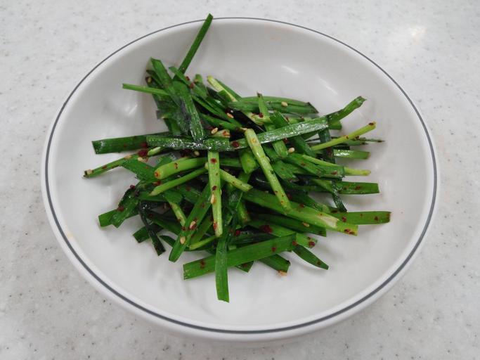 Keywords: leek side dish vegetable dining room cooking food republic of korea delicious food food photography spicy red pepper powder delicious