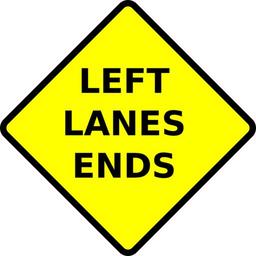 Keywords: left lane ends caution road street end sign symbol highway transportation