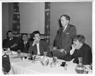 Keywords: smithsonian institution smithsonianinstitution smithsonian institution archives smithsonianinstitutionarchives women's history month womenshistorymonth women in science womeninscience 2011 government 20th century - mid 20thcenturymid physics monochrome people blackandwhite black and white Subject: Condon, Edward Uhler 1902-1974        Davis, William H (William Hammatt) 1879-1964        Douglas, Helen Gahagan 1900-1980        McMahon, Brien 1903-1952        Shapley, Harlow 1885-1972        Harvard College Observatory        United States National Bureau of Standards        United States National War Labor Board (1942-1945) Type: Black-and-White Prints Date: 1945 Topic: Astronomy      Nuclear physics      Physics Local number: SIA Acc. 90-105 [SIA-SIA2008-1207] Summary: U.S. National Bureau of Standards director Edward Uhler Condon (1902-1974); U.S. Senator Brien McMahon (1903-1952); U.S. Representative Helen Gahagan Douglas (1900-1980); Harvard College Observatory astronomer Harlow Shapley (1885-1972); and William Hammatt Davis (1879-1964), former Chairman of the War Labor Board, at an event sponsored by Science Service. In late 1945, Senator McMahon was developing the Atomic Energy Act of 1945, which established the U.S. Atomic Energy Commission. Cite as: Acc. 90-105 - Science Service, Records, 1920s-1970s, Smithsonian Institution Archives Persistent URL:Link to data base record Repository:Smithsonian Institution Archives View more collections from the Smithsonian Institution. Subject: Condon, Edward Uhler 1902-1974 Davis, William H (William Hammatt) 1879-1964 Douglas, Helen Gahagan 1900-1980 McMahon, Brien 1903-1952 Shapley, Harlow 1885-1972 Harvard College Observatory United States National Bureau of Standards United States National War Labor Board (1942-1945) Type: Black-and-White Prints Date: 1945 Topic: Astronomy Nuclear physics Physics Local number: SIA Acc. 90-105 [SIA-SIA2008-1207] Summary: U.S. National Bureau of Standards director Edward Uhler Condon (1902-1974); U.S. Senator Brien McMahon (1903-1952); U.S. Representative Helen Gahagan Douglas (1900-1980); Harvard College Observatory astronomer Harlow Shapley (1885-1972); and William Hammatt Davis (1879-1964), former Chairman of the War Labor Board, at an event sponsored by Science Service. In late 1945, Senator McMahon was developing the Atomic Energy Act of 1945, which established the U.S. Atomic Energy Commission. Cite as: Acc. 90-105 - Science Service, Records, 1920s-1970s, Smithsonian Institution Archives Persistent URL:Link to data base record Repository:Smithsonian Institution Archives View more collections from the Smithsonian Institution. |