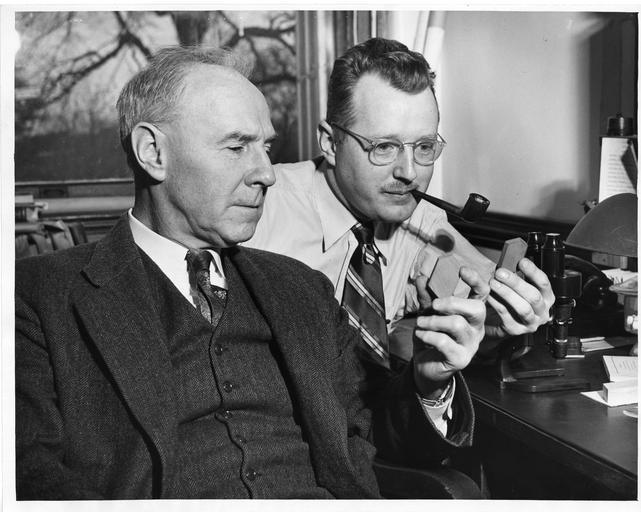 Keywords: smithsonian institution smithsonianinstitution foaf:depicts=http://nla.gov.au/nla.party-1204204 foaf:depicts=httpnlagovaunlaparty1204204 xmlns:foaf=http://xmlns.com/foaf/0.1/ xmlns:foaf=httpxmlnscomfoaf01 foaf:depicts=http://nla.gov.au/nla.party-1018255 foaf:depicts=httpnlagovaunlaparty1018255 two men pipe glasses balding professors geology smithsonian institution archives smithsonianinstitutionarchives pipesmoker; pipesmoker smoker; smoker smoking people blackandwhite monochrome indoor black and white Subject: Bowen, Norman Levi 1887-1956        Tuttle, O. F (Orville Frank) 1916-        Carnegie Institution of Washington Geophysical Laboratory        Pennsylvania State University        Stanford University        University of Chicago Type: Black-and-white photographs Topic: Geology      Petrology Local number: SIA Acc. 90-105 [SIA2008-0002] Summary: Geologist Norman Levi Bowen (1887-1956) was at Carnegie Institution of Washington, 1920-1937, and then became professor at University of Chicago; Orville Frank Tuttle (1916-1983) was at the Carnegie Institution Geophysical Laboratory, 1942-1945 and 1947-1953, a professor at Penn State University, 1953-1965, and then at Stanford University, 1965-1970 Cite as: Acc. 90-105 - Science Service, Records, 1920s-1970s, Smithsonian Institution Archives Persistent URL:http://siris-archives.si.edu/ipac20/ipac.jsp?&profile=all&source=~!siarchives&uri=full=3100001~!289397~!0#focus Repository:Smithsonian Institution Archives View more collections from the Smithsonian Institution. Subject: Bowen, Norman Levi 1887-1956        Tuttle, O. F (Orville Frank) 1916-        Carnegie Institution of Washington Geophysical Laboratory        Pennsylvania State University        Stanford University        University of Chicago Type: Black-and-white photographs Topic: Geology      Petrology Local number: SIA Acc. 90-105 [SIA2008-0002] Summary: Geologist Norman Levi Bowen (1887-1956) was at Carnegie Institution of Washington, 1920-1937, and then became professor at University of Chicago; Orville Frank Tuttle (1916-1983) was at the Carnegie Institution Geophysical Laboratory, 1942-1945 and 1947-1953, a professor at Penn State University, 1953-1965, and then at Stanford University, 1965-1970 Cite as: Acc. 90-105 - Science Service, Records, 1920s-1970s, Smithsonian Institution Archives Persistent URL:http://siris-archives.si.edu/ipac20/ipac.jsp?&profile=all&source=~!siarchives&uri=full=3100001~!289397~!0#focus Repository:Smithsonian Institution Archives View more collections from the Smithsonian Institution.