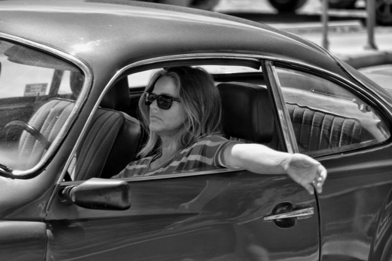 Keywords: summer downtown woman lady female person car vehicle handsignal driving