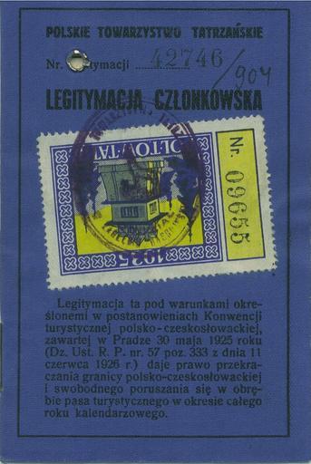 | Keywords: LegitymacjaPolTowTatr1935.jpg identity card of Polish Tatra Mountains Society 1935 legitymacja członkowska Polskiego Towarzystwa Tatrzańskiego z 1935 należąca do Zygmunta Szczotkowskiego 2006-11-12 own assumed Julo Unidentified Tatra Mountains 1935 Zygmunt Szczotkowski |