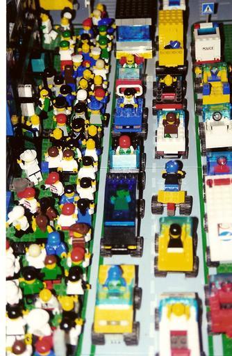 Keywords: Lego-Chicago Rush Hour.jpg Many LEGO-people on the South Franklin Street in Lego-Chicago - Scene taken by myself when I was younger ;- - scanned up 2005-12-26 own assumed Otto Normalverbraucher Lego buildings