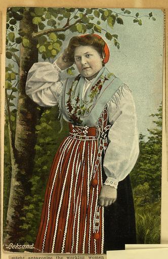 Keywords: Leksandkvinna, 1911.jpg From the U S Library of Congress http //memory loc gov/master/rbc/rbcmil/scrp7009302/001 jpg ITEM TITLE Postcard labeled Leksand shows Swedish woman in traditional folk costume CREATED/PUBLISHED Stockholm Sweden June 1911 NOTES Verso manuscript note from M G P probably Mary Gray Peck thanks Anne Fitzhugh Miller for farewell note and Votes for Women ribbon from New York City suffrage parade; reports Carrie Chapman Catt being well-received and invited to have audience with King of Norway PD-old-70-1923 Leksand Municipality Carrie Chapman Catt Traditional costumes of Dalarna |