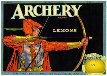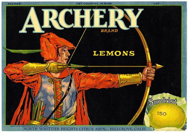 | Keywords: sunkist text Repository: California Historical Society Collection: Crate, can, and bottle label collection Date: Undated Call Number: Kemble Spec Col 08 Digital object ID: Kemble Spec Col 08_036.jpg General note: North Whittier Heights Citrus Association, Hillgrove, California Preferred citation: Lemon crate label, Archery Brand, Lehmann Printing and Lithographing Co., Crate, can, and bottle label collection, Kemble Spec Col 08, courtesy, California Historical Society, Kemble Spec Col 08_036.jpg. Online finding aid: www.oac.cdlib.org/findaid/ark:/13030/c8s75jq0/ Repository: California Historical Society Collection: Crate, can, and bottle label collection Date: Undated Call Number: Kemble Spec Col 08 Digital object ID: Kemble Spec Col 08_036.jpg General note: North Whittier Heights Citrus Association, Hillgrove, California Preferred citation: Lemon crate label, Archery Brand, Lehmann Printing and Lithographing Co., Crate, can, and bottle label collection, Kemble Spec Col 08, courtesy, California Historical Society, Kemble Spec Col 08_036.jpg. Online finding aid: www.oac.cdlib.org/findaid/ark:/13030/c8s75jq0/ |