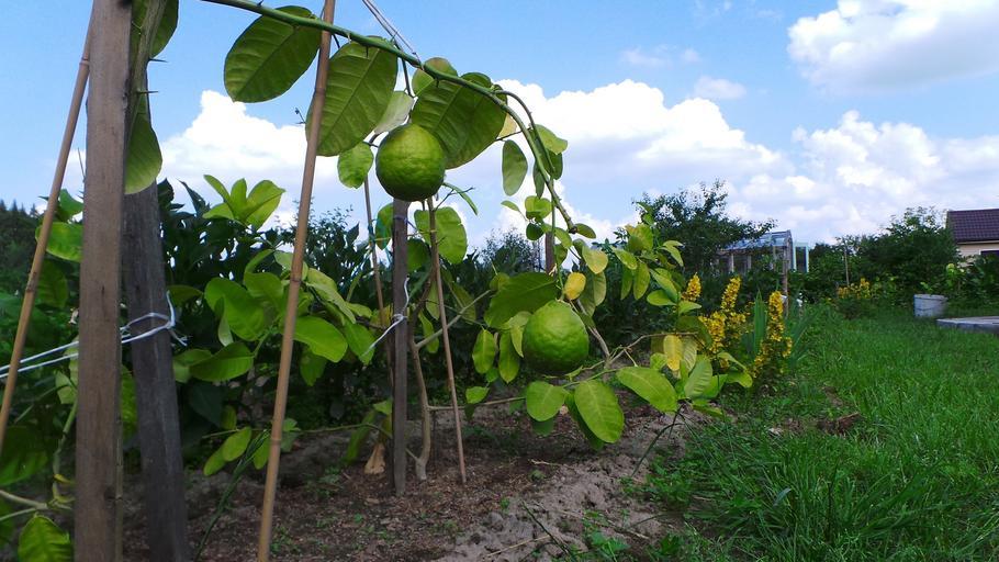 Keywords: lemon fruit citrus green fresh garden in the summer of nature sheet sky clouds cloud blue blue sky greens grass green grass russia lawn countryside summer summer day in the summer time