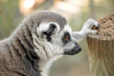 Keywords: lemur animal zoo nature zoo animals wildlife monkey tropical looking brown one eye close up face hand