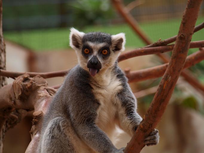 Keywords: lemur tongue out zoo sitting limb cute mammal madagascar wildlife looking portrait