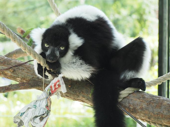 Keywords: lemure animal black white lazy zoo vari
