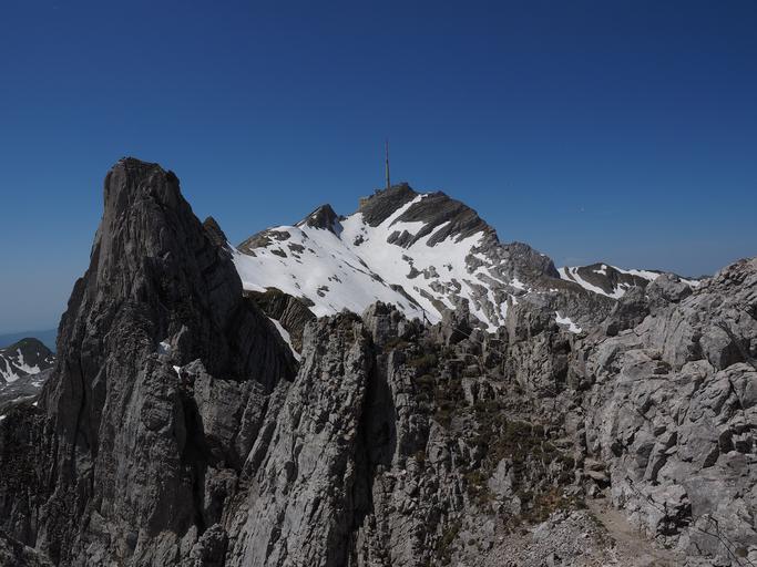 | Keywords: lenses ridge climbing scramble rope the rope säntis mountain alpine snow swiss alps appenzell mountain station transmission tower alpstein alpstein region transmitter säntis reinforced concrete swisscom broadcast mountain summit mountain peak summit great wire rope |