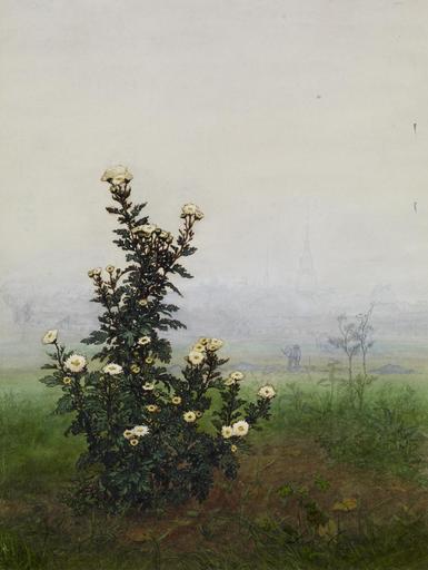 | Keywords: Léon Bonvin - Flowering Chrysanthemum - Walters 371518 (2).jpg In this scene Bonvin has masterfully conveyed the time of day-the early morning when he was free to paint-a chrysanthemum plant is silhouetted against an uncultivated patch of wild carrots grasses and weeds In the mid-ground a peasant stoops toiling in the soil; discernible through the morning mists rendered in white wash are houses and church spires An inscription on the reverse of the sheet identifies the site as the plain of Issy just outside Paris's fortifications In the 1860s both Vaugirard and the adjoining village of Issy were rapidly being developed to provide housing for those who had been displaced by Baron Haussmann's transformation of the core of Paris 1863 watercolor gouache iron gall ink and pen heightened with gum varnish over graphite underdrawing on moderately textured moderately thick cream wove paper cm 24 3 18 6 accession number 37 1518 9003 William T Walters Baltimore February 28 1863 by commission George A Lucas as agent Henry Walters city Baltimore Walters Art Museum Henry Walters Commissioned by William T Walters 1863 Signature and date In brown ink lower right Léon Bonvin 1863; Number In graphite verso 33; Watermark J Whatman Turkey Mill The Drawings and Watercolors of Léon Bonvin The Cleveland Museum of Art Cleveland; The Walters Art Gallery Baltimore 1980-1981 A Vanishing Meadow The Watercolors of Léon Bonvin The Walters Art Gallery Baltimore 1994 Parallels and Precedents Baltimore's George A Lucas Collection Baltimore Museum of Art Baltimore 1995 Léon Bonvin 1834-1866 Government House Annapolis 1997 The Essence of Line place of origin France <gallery> File Léon Bonvin - Flowering Chrysanthemum - Walters 371518 jpg </gallery> Walters Art Museum license 2D The Essence of Line Paintings by Léon Bonvin in the Walters Art Museum Media contributed by the Walters Art Museum needs category review |