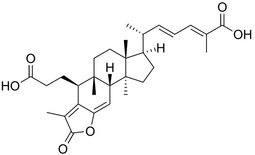 Keywords: Lepidolide.svg Chemical structure of lepidolide Own 18 56 9 March 2011 UTC Ed Edgar181 Cucurbitanes Dicarboxylic acids Gamma-lactones