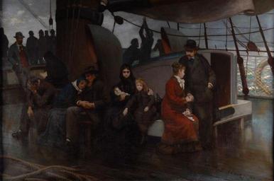 | Keywords: Les Emigrants.jpg  Artwork Charles Emmanuel Jadin 1845-1922 fr Les Emigrants en The painting in dark colours shows emigrants on a ship 1879 Oil on canvas Size cm 206 133 Institution Musée des Beaux-Arts de Bernay object history The museum bought the painting in 1922 from Mme James the sister of the painter exhibition history credit line E Jadin accession number 07010001774 PD-old-auto 1922 19th-century genre paintings from France 19th-century paintings in France 1879 works in France 1879 paintings Oil paintings in France Emigrants in art Paintings in the Musée des Beaux-Arts de Bernay Jadin |