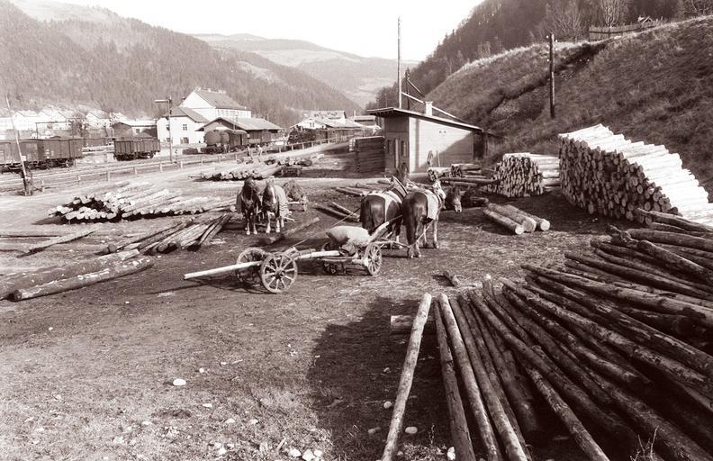 | Keywords: Lesno skladišče v Dravogradu 1960.jpg Lesno skladišče v Dravogradu 271862 1960-12-05 creator Jože Gal PD-Slovenia 1960 in Slovenia Black and white photographs of Dravograd Warehouses in Slovenia Wood-processing industry in Slovenia Horse-drawn carts in Slovenia Photographs by Jože Gal Dravograd train station |