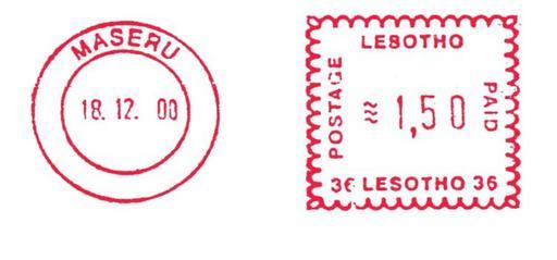 Keywords: Lesotho stamp type BA6.jpg en Meter stamp catalog image Lesotho type BA6 Richard Stambaugh Richard Stambaugh 2011-11-13 Meter stamps of Lesotho