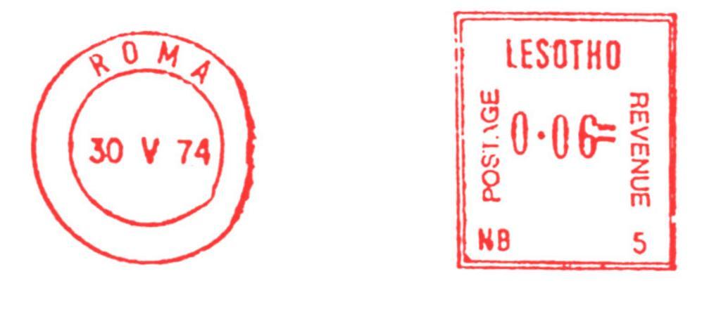 Keywords: Lesotho stamp type BC2.jpg en Meter stamp catalog image Lesotho type BC2 Richard Stambaugh Richard Stambaugh 2011-11-15 Meter stamps of Lesotho