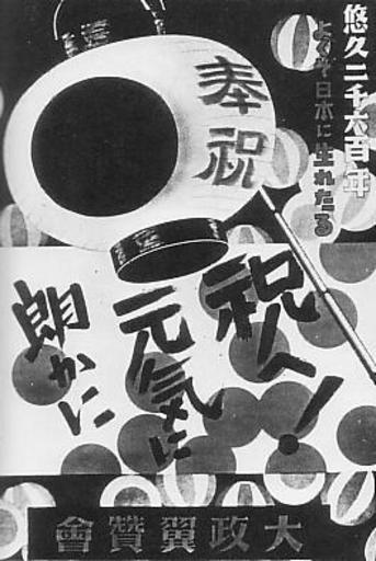 | Keywords: Lets celebrate energetically and cheerfully.JPG Imperial Rule Assistance Association Poster Let's celebrate energetically and cheerfully 大政翼賛会の スター へ!元気に かに Japanese book Asahi Historical Photographs Library War and People 1940-1949 Vol 1 published by Asahi Shimbun Company 日新聞社 日歴史写 ライブラリー 戦争と庶民1940-1949 第1巻 より Year 1940 1940年 Author Notes This file was scanned and edited by the uploader Abasaa ファイルはあばさーによりスキャンおよび編集されました PD-Japan-oldphoto 2600th Anniversary Celebrations of the Japanese Empire Political posters of Japan |