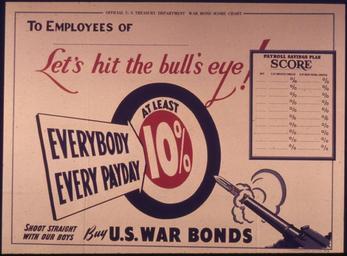 Keywords: "Let's hit the bull's eye" - NARA - 514879.tif Scope and content General notes 514879 Local identifier 44-PA-1273 Office for Emergency Management Office of War Information Domestic Operations Branch Bureau of Special Services 03/09/1943 - 09/15/1945 Still Picture Records Section Special Media Archives Services Division NWCS-S National Archives at College Park 8601 Adelphi Road College Park MD 20740-6001 1941 - 1945 Record group Record Group 44 Records of the Office of Government Reports 1932 - 1947 Record group ARC 373 World War II Posters compiled 1942 - 1945 Series ARC 513498 File unit File unit ARC Variant control numbers NAIL Control Number NWDNS-44-PA-1273 yes Other versions <gallery> File Let's_hit_the_bull's_eye _-_NARA_-_514879 tif tif File Let's_hit_the_bull's_eye _-_NARA_-_514879 jpg jpg </gallery> NARA-cooperation PD-USGov World War II posters from the United States NARA TIF images with categorized JPGs |