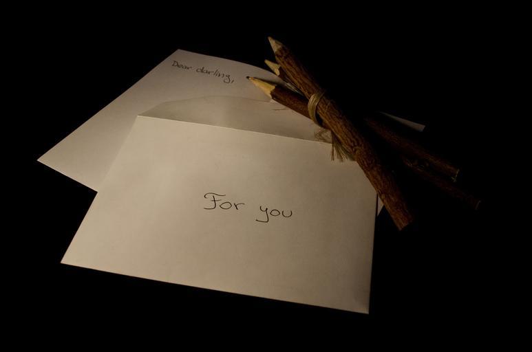 Keywords: letter messages love pencils pencil words feeling shadow paper envelope