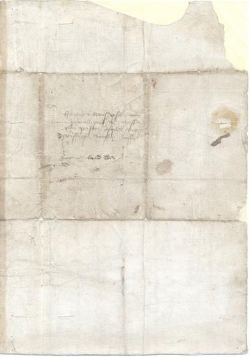 | Keywords: university of victoria universityofvictoria uvic manuscripts, medieval manuscriptsmedieval monochrome texture Letter of Thomas Jermy to William Paston (d. 1610), 37 lines in English plus signature, with address and note of sender. Creasing and wear patterns suggest entire sheet was previously folded quite small with address on the outside. Letter and address are in one hand (Thomas Jermy's); note on sender ("Jarmes laste lettre") is possibly in William Paston's hand; initials and date notation of eighteenth-century Norfolk antiquarian Francis Blomefield are at foot of letter. Paper is somewhat stained and damaged, especially along fold lines, but damage has been stabilized by repairs, including grafted modern paper, notwithstanding minor text loss at lower right corner. Letter of Thomas Jermy to William Paston (d. 1610), 37 lines in English plus signature, with address and note of sender. Creasing and wear patterns suggest entire sheet was previously folded quite small with address on the outside. Letter and address are in one hand (Thomas Jermy's); note on sender ("Jarmes laste lettre") is possibly in William Paston's hand; initials and date notation of eighteenth-century Norfolk antiquarian Francis Blomefield are at foot of letter. Paper is somewhat stained and damaged, especially along fold lines, but damage has been stabilized by repairs, including grafted modern paper, notwithstanding minor text loss at lower right corner.  |