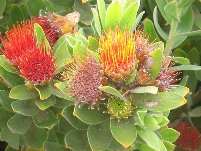 Keywords: Leucospermum oleifolium flower.jpg Cape Town 2006 Andrew Massyn Detail of larger pic 2006-01-07 own assumed Andrew massyn~commonswiki Leucospermum oleaefolium
