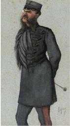 Keywords: Lewis Guy Phillips Vanity Fair 24 July 1880.jpg Caricature of Colonel Lewis Guy Phillips 1831-1887 Caption read Order at Wimbledon <br>Accompanying biographical note in Vanity Fair read A good cricketer a wonderful runner and a marvellous boxer Although blessed with a knowledge of modern tongues that would have benefited the Diplomatic Service he chose the Army as a serious profession He is an acute bibliophile He has never broken the eleventh commandment and possibly for this reason he has never been married Original pencil watercolour and bodycolour Published in Vanity Fair 24 July 1880 <br>Downloaded from http //www christies com/LotFinder/lot_details aspx from salesummary pos 8 intObjectID 4647137 1880 creator Carlo Pellegrini PD-old-100 DEFAULTSORT Phillips Lewis Guy Caricatures by Carlo Pellegrini in Vanity Fair Vanity Fair caricatures military people British Army officers Old Etonians Alumni of Christ Church Oxford 1831 births 1887 deaths |