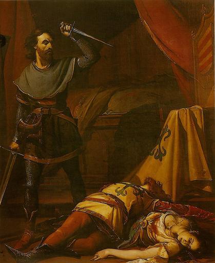 | Keywords: Leyenda de la torre de la Malmuerta (Diputación de Córdoba).jpg El lienzo representa un hecho histórico del que derivaría posteriormente la leyenda de los comendadores de Córdoba ocurrido en la ciudad de Córdoba en 1448 durante el reinado de Juan II de Castilla Los hechos históricos auténticos independientemente de la leyenda posterior señalan que el protagonista de la leyenda Fernando Alfonso de Córdoba caballero Veinticuatro de la ciudad de Córdoba asesinó a su esposa Beatriz de Hinestrosa y a Jorge de Córdoba y Solier comendador de Cabeza del Buey que la había seducido Además asesinó a Fernando Alfonso de Córdoba y Solier hermano del anterior y comendador de Moral siendo ambos hermanos caballeros de la Orden de Calatrava y primos del asesino No obstante lo anterior la leyenda señala sin fundamento alguno que Fernando Alfonso de Córdoba mató a su esposa creyendola adúltera sin fundamento alguno por lo que arrepentido solicitó perdón al rey Juan II quien según la leyenda le ordenó contruir una torre en Córdoba como expiación por su crimen llamándose desde entonces dicha torre la Mal-muerta No obstante la torre de la Malmuerta fue construída en realidad entre 1404 y 1408 durante el reinado de Enrique III de Castilla 1872 Oil on canvas Diputación Provincial de Córdoba España cite book Salcedo Hierro Miguel La Mezquita Catedral de Córdoba 2000 Publicaciones de la Obra Social y Cultural de Cajasur 84-7801-285-0 cite book Salcedo Hierro Miguel La Mezquita Catedral de Córdoba 2000 Publicaciones de la Obra Social y Cultural de Cajasur 84-7801-285-0 other versions PD-old-100 Uploaded with UploadWizard Malmuerta Tower Criminals History of Córdoba Spain José María Rodríguez de Losada 19th-century oil on canvas paintings in Spain 1872 paintings Palacio de la Merced Paintings in Córdoba Spain Legends of Spain |