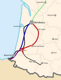| Keywords: LGV Bordeaux - Frontière espagnole.svg Carte des trois options de la future LGV Bordeaux - Frontière espagnole En noir la ligne actuelle qui pourrait être portée de deux à quatre voies et l'embranchement vers Pau et Tarbes En rouge et en vert les deux options ligne nouvelle avec en violet leur tronc commun Départements_de_France svg http //www debatpublic-projetferroviaire-bordeaux-espagne org/documents/dossier-mo html 2009-10-21 19 51 UTC Départements_de_France svg bayo derivative work Benjism89 <span class signature-talk >talk</span> Départements de France auteur User bayo</nowiki> Uploaded with derivativeFX SVG maps of France High speed railway lines in France |