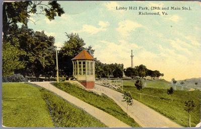| Keywords: vcu libraries vculibraries vcu digital collections vcudigitalcollections outdoor landscape hill yard Description: Libby Hill Park, (29th & Main Sts., Richmond, Va.) Though limited in area this beautiful park, by reason of the command and position it occupies on one of the seven hills from which Richmond (like ancient Rome) is built-is a great favorite with all visitors. From its summit may be obtained a magnificent panoramic view of the city and surrounding country, while at its foot, sweeping South and West in a wide and graceful 'bend,' flows the historic James river. The imposing 'Soldiers' and Sailors' monument standing in this park was unveiled May 30th, 1894. Manufacturer: Southern Bargain House, Richmond, Va. Date Postmarked: 1912 Rights: This item is in the public domain. Acknowledgement of the Virginia Commonwealth University Libraries as a source is requested. Reference URL: dig.library.vcu.edu/u?/postcard,611 Collection: Rarely Seen Richmond: Early twentieth century Richmond as seen through vintage postcards Description: Libby Hill Park, (29th & Main Sts., Richmond, Va.) Though limited in area this beautiful park, by reason of the command and position it occupies on one of the seven hills from which Richmond (like ancient Rome) is built-is a great favorite with all visitors. From its summit may be obtained a magnificent panoramic view of the city and surrounding country, while at its foot, sweeping South and West in a wide and graceful 'bend,' flows the historic James river. The imposing 'Soldiers' and Sailors' monument standing in this park was unveiled May 30th, 1894. Manufacturer: Southern Bargain House, Richmond, Va. Date Postmarked: 1912 Rights: This item is in the public domain. Acknowledgement of the Virginia Commonwealth University Libraries as a source is requested. Reference URL: dig.library.vcu.edu/u?/postcard,611 Collection: Rarely Seen Richmond: Early twentieth century Richmond as seen through vintage postcards |