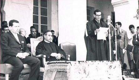 | Keywords: Libyan university graduation ceremony01.jpg en Libyan university graduation ceremony From left PM Mohieddin Fikini and Crown Prince Hassan ar Reda seating and Ahmed Fouad Shennib speaking ar حفل التخرج الجامعة الليبية من اليسار جلوساً محي الدين فكيني رئيس الوزراء، وولي العهد الحسن الرضا، وأحمد فؤاد شنيب يلقي كلمة http //www albakour com/ albakour com see file http //libyalbakour com/album/displayimage php pid 10403 fullsize 1 author 1964-01 PD-Libya Mohieddin Fikini Ahmed Fouad Shennib Hasan as-Senussi University of Libya 1964 in Libya |