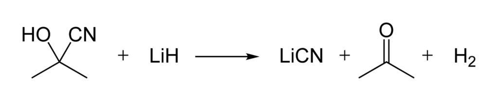 Keywords: LiCN-from-acetone-cyanohydrin-2D-skeletal.png Reaction scheme for the formation of lithium cyanide LiCN from acetone cyanohydrin and lithium hydride Own 2008-07-25 Ben Mills Benjah-bmm27 Images by Ben Mills Acetone cyanohydrin Lithium cyanide Lithium hydride |