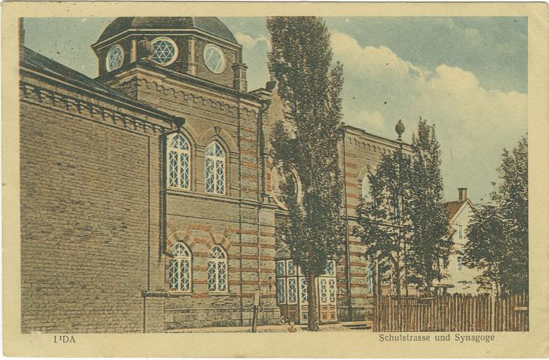 Keywords: Lidzkaja synagoga. Лідзкая сынагога (1916).jpg Ліда Lida Сынагога College of Charleston Libraries William A Rosenthall Judaica Collection - Postcards Author 1916 PD-old-70 History of Lida Images from molotok ru Synagogue in Lida