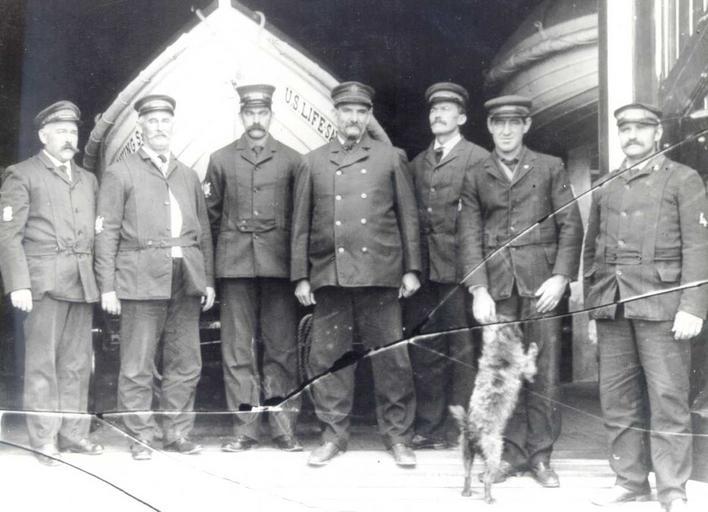 | Keywords: Life saving station crew and boat house.jpg Life saving station crew location and date unknown damaged glass plate photograph http //www uscg mil/history/uscghist/USLSS_Uniform_Photos asp U S Coast Guard Historian Author Federal government work unknown United States Life-Saving Service United States Life-Saving Service oar-powered surfboats PD-USGov |