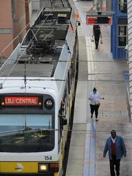 Keywords: light rail station dallas metro metro rail rapid transit mass transit metrolink arrival people mover platform rail transportation track commute people transport train urban city passenger texas