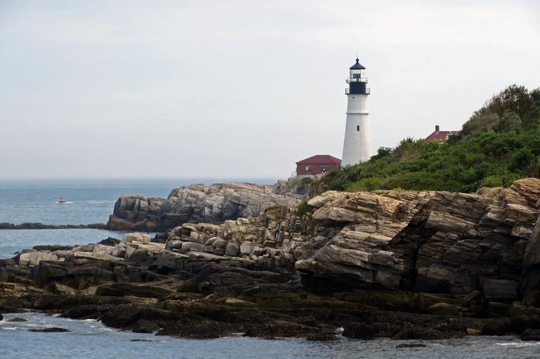 Keywords: lighthouse beacon warning shore light navigation tower landmark landscape seascape rocks coastline coast nautical maritime safety scenic guidance beam danger signal architecture building fort williams park cape elizabeth maine usa nature ocean sea water rugged