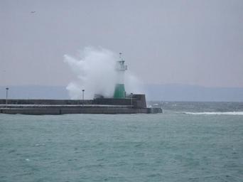 Keywords: lighthouse forward wave swell dramatic drama pier sea sassnitz port tower