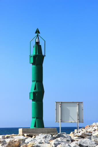 Keywords: lighthouse green sea blue water shipping