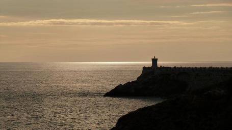 Keywords: lighthouse tuscany piombino italy evening light back light sea mediterranean horizon