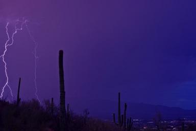 Keywords: lightning desert landscape sky clouds storm skyline atmosphere weather meteorology haze purple electric thunder stormy sky bad weather