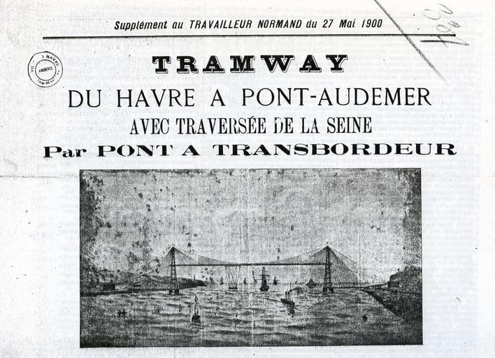 Keywords: Ligne du Sud-Ouest2.jpg Projet Ligne du Sud-Ouest Archives municipales du Havre Série O 2 1900 Journal du Travailleur Normand supplément Domaine Public - PD Old PD-old Ligne du Sud-Ouest 27 May 1900 works Transport in Normandy Ancien Tramway du Havre Rouen Transporter Bridge 1900 photographs |