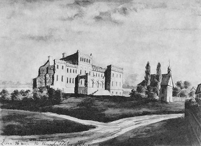| Keywords: Līksna castle ruins and chapel.jpg pl Ruiny zamku Zybergów i kościół p w Jezusa Marii i Józefa Widok od strony drogi Pałac dwukondygnacjowy z ryzalitami bocznymi zwieńczony attyką; w trzykondygnacjowej części środkowej taras wsparty na arkadach i zewnętrzne schody; z prawej stronyjednonawowy kościół z sygnaturką nad wejściem http //www pinakoteka zascianek pl/Orda/Orda_Witebsk_R1 htm creator Napoleon Orda century 19 PD-old-100 Paintings of Līksna by Napoleon Orda Līksna Manor Historical images of Latvia |