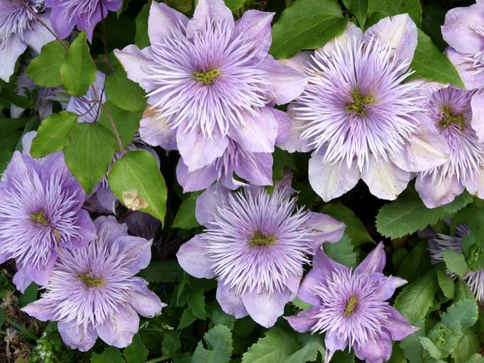 Keywords: lilac clematis wall hanging flowers climbing plants spring flower creeper flower foliage garden green plant spring wall nature climbing hanging lush leafy bunch fresh color