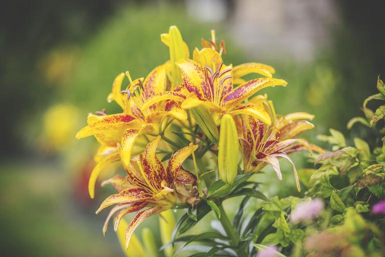 Keywords: lilies yellow maroon lily flower plant yellow flowers bloom floral garden blossom outdoor