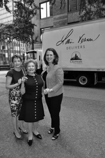 Keywords: Lillian Vernon.jpg Uploaded with en wp UW marker 2012 08 02 Lillian Vernon Citymeals-on-Wheels board member donates a refrigerated truck to the charity Sent personally Annie Watt Annie Watt PermissionOTRS 2012080210011858 Annie Watt Three women |