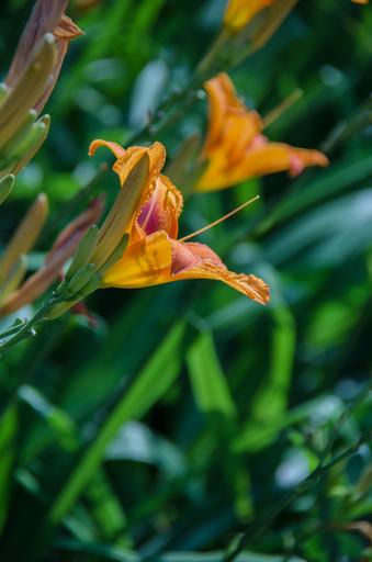 Keywords: lily orange flowers summer flower bloom sheet in the summer of leaves day july closeup