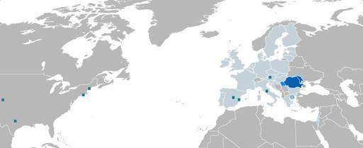 Keywords: Limba romana Atlanticul.png Limba română în Atlanticul de Nord / Romanian language at the Northern Atlantic lucrare proprie / self-made 18 decembrie 2007 / 18 December 2007 Danutz Image Limba romana Atlanticul-800px png smaller version Legendă Română 0035AD Limbă oficială ÅŸi naÅ£ională Republica Moldova ÅŸi România 007FFF Limbă oficială dar nu principală Voivodina în Serbia ÅŸi statul autonom monastic Muntele Athos unde este limbă liturgică 99DDDD Limba unei minorităţi naÅ£ionale; acest statut presupune disponibilitatea de resurse media literare ÅŸi/sau educaÅ£ionale în limba română Israel Valea Timocului în Serbia sudul Ucrainei lightblue Uniunea Europeană limba română este una dintre limbile oficiale ÅŸi de lucru ale Uniunii Europene 669999 Diaspora românească printre altele Spania Italia Europa centrală toate conform datelor din articolul žromâni ÅŸi SUA potrivit en Image Romanian1346 gif English 0035AD Official and national language Moldova and Romania 007FFF Official but not primary language Vojvodina in Serbia and the autonomous monastic state of Mount Athos where it is a liturgical language 99DDDD National minority language; this status aserts sizeable media literature and/or schooling oportunities in the Romanian language Israel Timok Valley in Serbia southern Ukraine lightblue European Union Romanian language is one of the official and working languages of the European Union 669999 Romanian diaspora including Spain Italy Central Europe all according to the article Romanians and the USA according to en Image Romanian1346 gif Maps of Romania