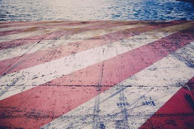 Keywords: limit demarcation road keep off road block red white bank kai lake ocean line protection fence away