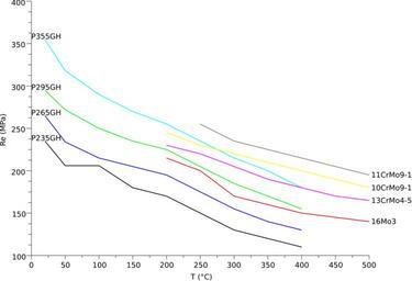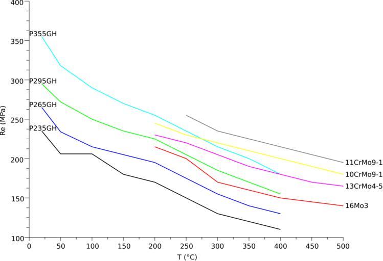 Keywords: Limite elastique fct temperature acier appareil pression.svg en Yield strength R<sub>e</sub> MPa vs temperature T °C steels for pressure vessels EN 10027 designation fr Limite élastique R<sub>e</sub> MPa en fonction de la température T °C aciers pour appareils de pression désignation EN 10027 own data from the french exam BTS ROC session 2009 épreuve U11 Éducation nationale France Cdang 2010-05-25 Drawn with Scilab processed with Inkscape inkscape Engineering graphs Scilab |
